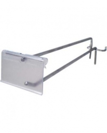 Для товара, размещаемого на крючки, используются специальные ценникодержатели. Данный вид ценникодержателей крепится на Т-образную штангу, размещенную над крючком, и позволяет разместить всю необходимую информацию о товаре и его цене, не закрывая при этом саму упаковку. Ценникодержатели для крючков могут быть представлены в разных цветах и размерах.