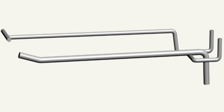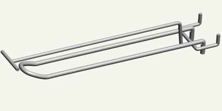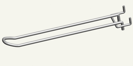 Гачок на перфорацію одинарний, одинарний з цінникоутримувачем, подвійний, подвійний з цінникоутримувачем (крок 50мм.) Незамінним елементом оформлення торгового залу магазину будь-якої величини є гачки для перфорації або сітки. Такий атрибут ідеально підходить для розміщення на ньому товарів в блістерній упаковці. До числа переваг конструкції відноситься здатність витримувати до 20 кг. ваги. Ще один очевидний плюс гачків для стелажів - ефективне розміщення товару «на увазі» у покупців. Товщина використовуваної нами дроту для виробництва гачка для торгових стелажів - 5 мм. Колір виконання гачків за бажанням замовника.